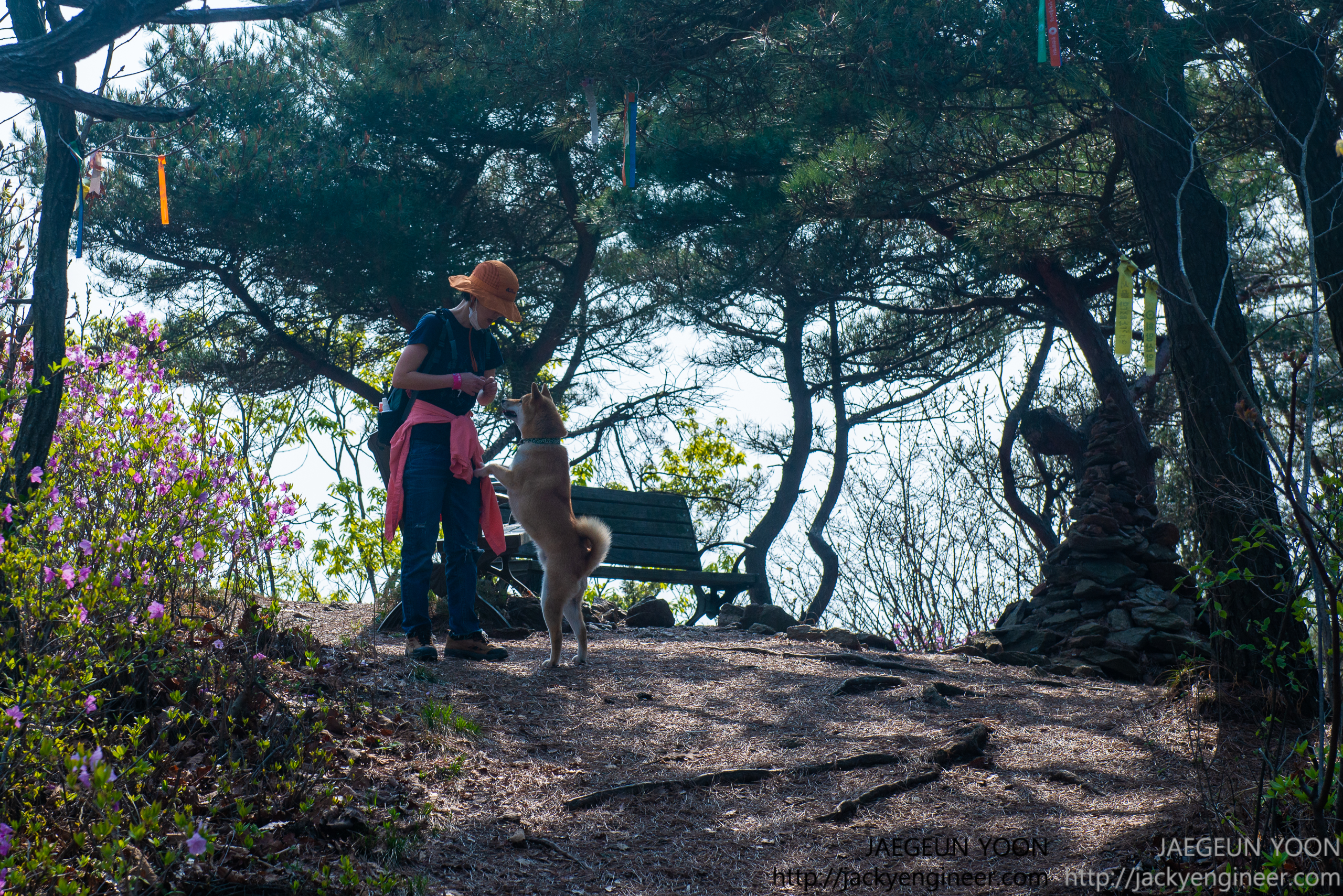 중간 중간 등산객이 없을때는 오프리시도 경험해 봅니다. 그런데 저한테서 멀리 떨어지지 않고 5~6걸음 정도 앞서 길을 걷더라구요.. 등산객이 거의 없을 주중에 다시 찾아오게 된다면 오프리시 시간이 좀 더 길게 할 수 있지 않을까 싶습니다.