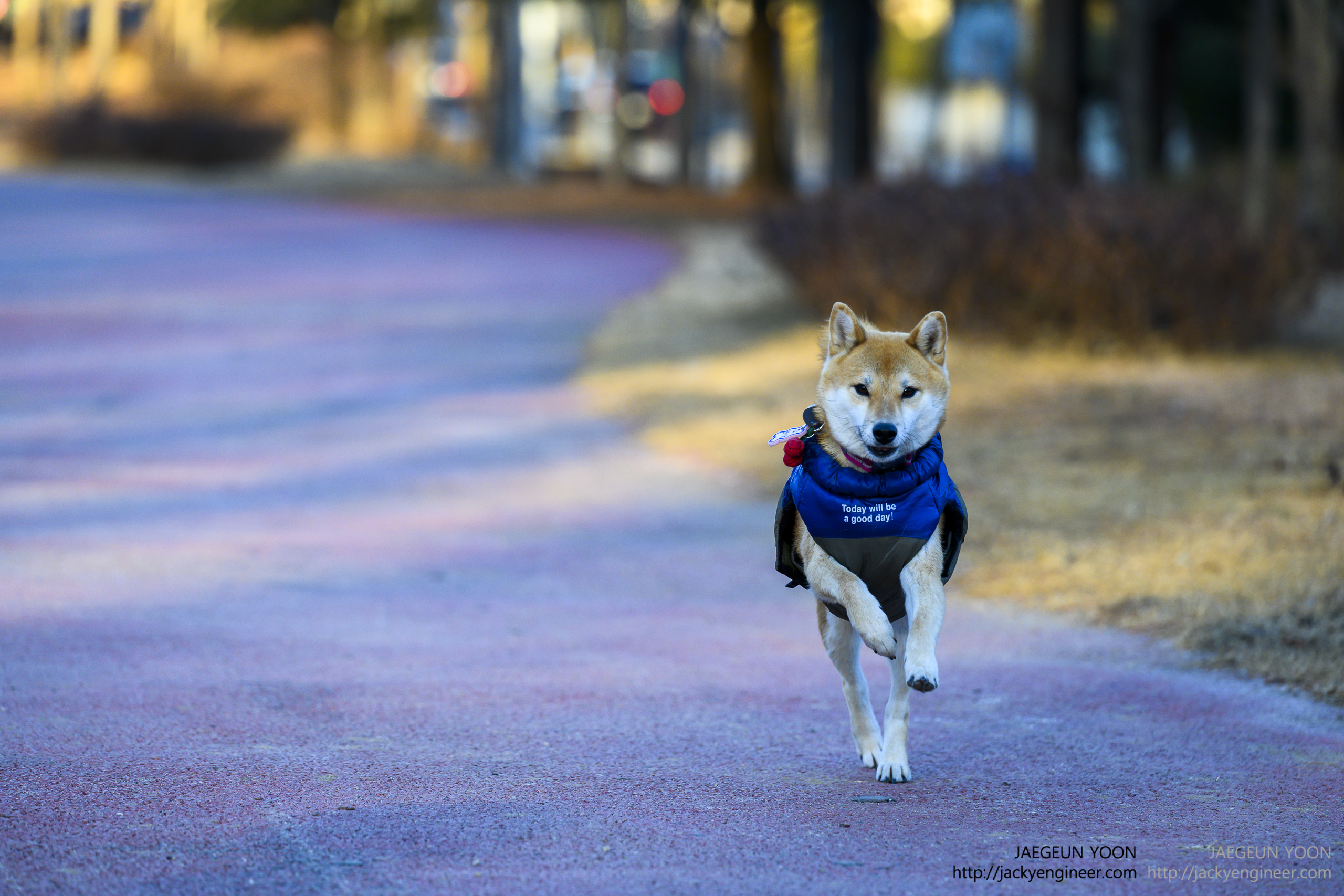 아래 사진에서 햇살이의 뛰는 장면은 이른 시간에 아무도 없는걸 확인하고 1초 내외의 짧은 시간동안 사진 담기를 했을 뿐..