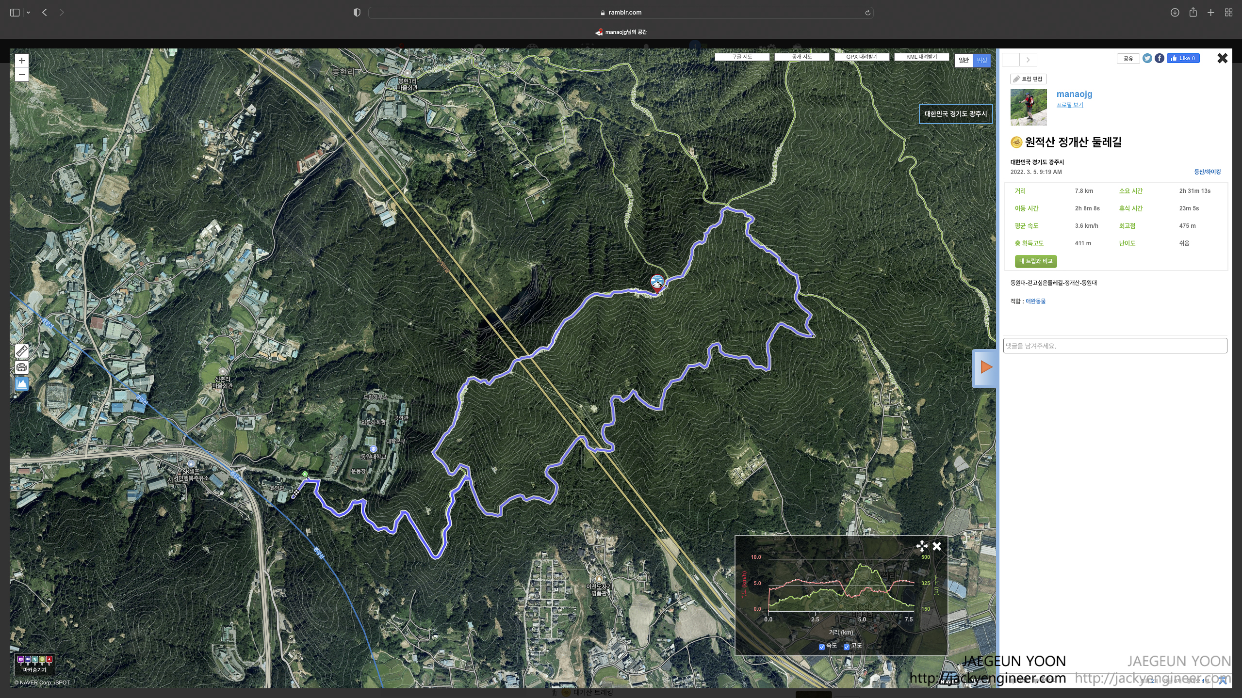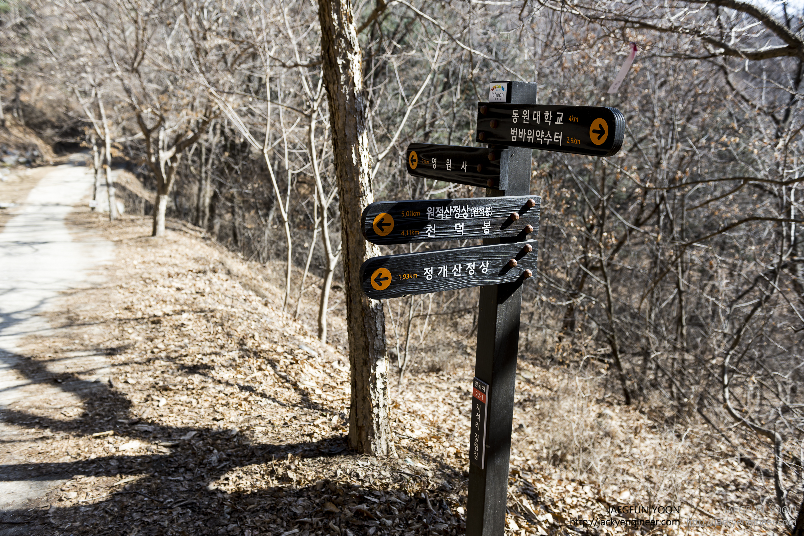 아래 이동 경로 사진의 아래쪽 경로가 임도이고 위쪽 경로가 동원대를 시작으로 정재산 원적산까지 이어지는 능선 코스입니다. 임도는 10Km 정도로 꽤나 긴 코스를 가지고 있습니다. 경기도 광주에 위치한 동원대학교가 출발점이라 수도권에서 접근성이 좋으며 길 자체도 워낙 정비가 잘되어 있어서 주중 주말 가리지 않고 많은분들이 찾는 곳입니다. 방문 계획이 있으시다면 무조건 빨리 도착하시는걸 추천 드립니다. 대학 도서관 주차장도 금방 만차가 되기 때문에..