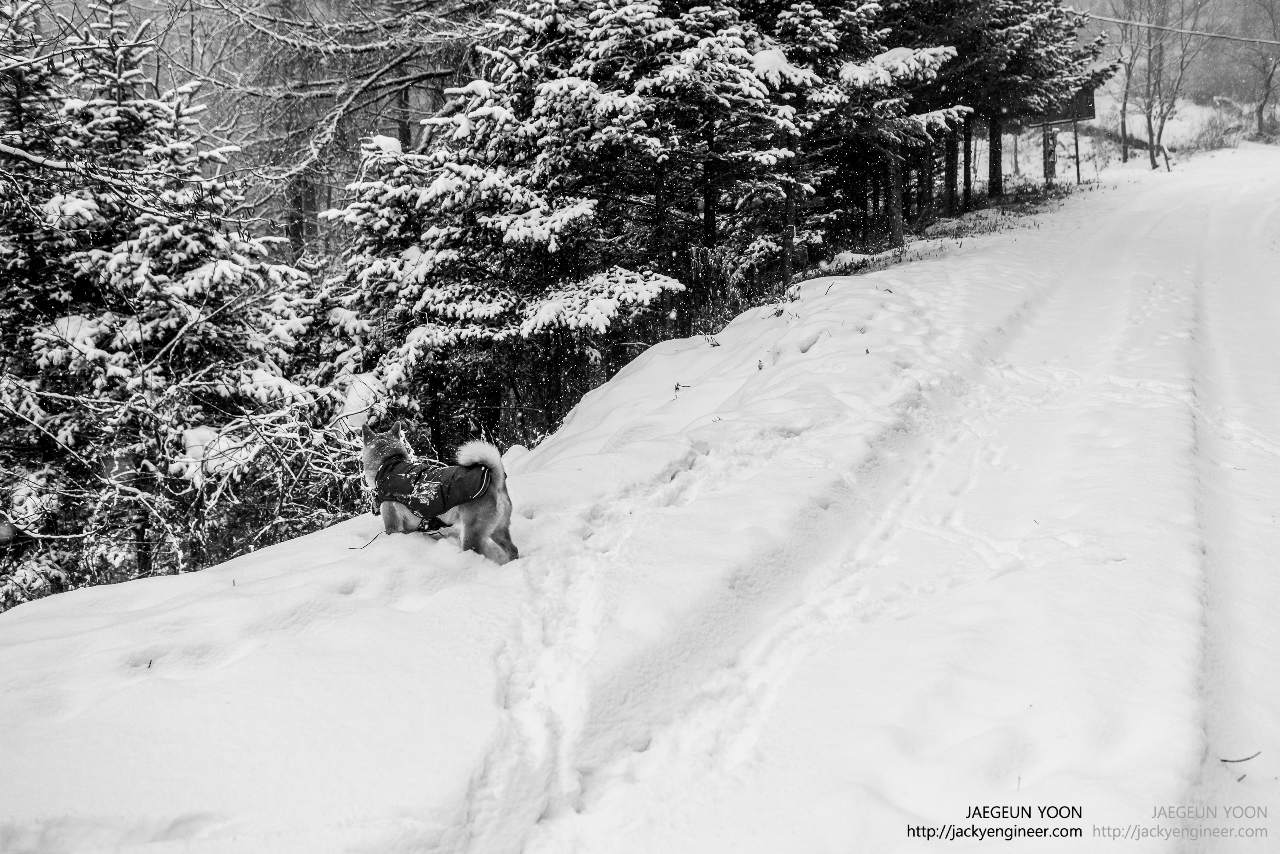 처음으로 대형견들과 함께 해보는 트레킹이라 살짝 걱정도 있었지만 다행히 아무일 없이 아무도 밟지 않은 눈길을 제대로 걸어볼 수 있었음...