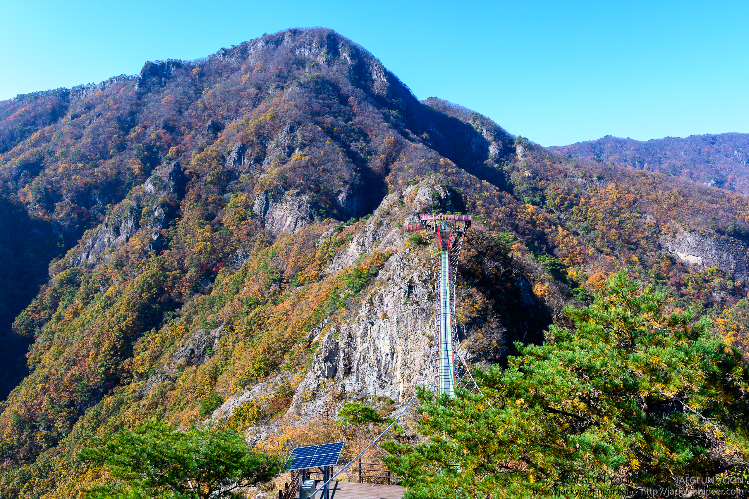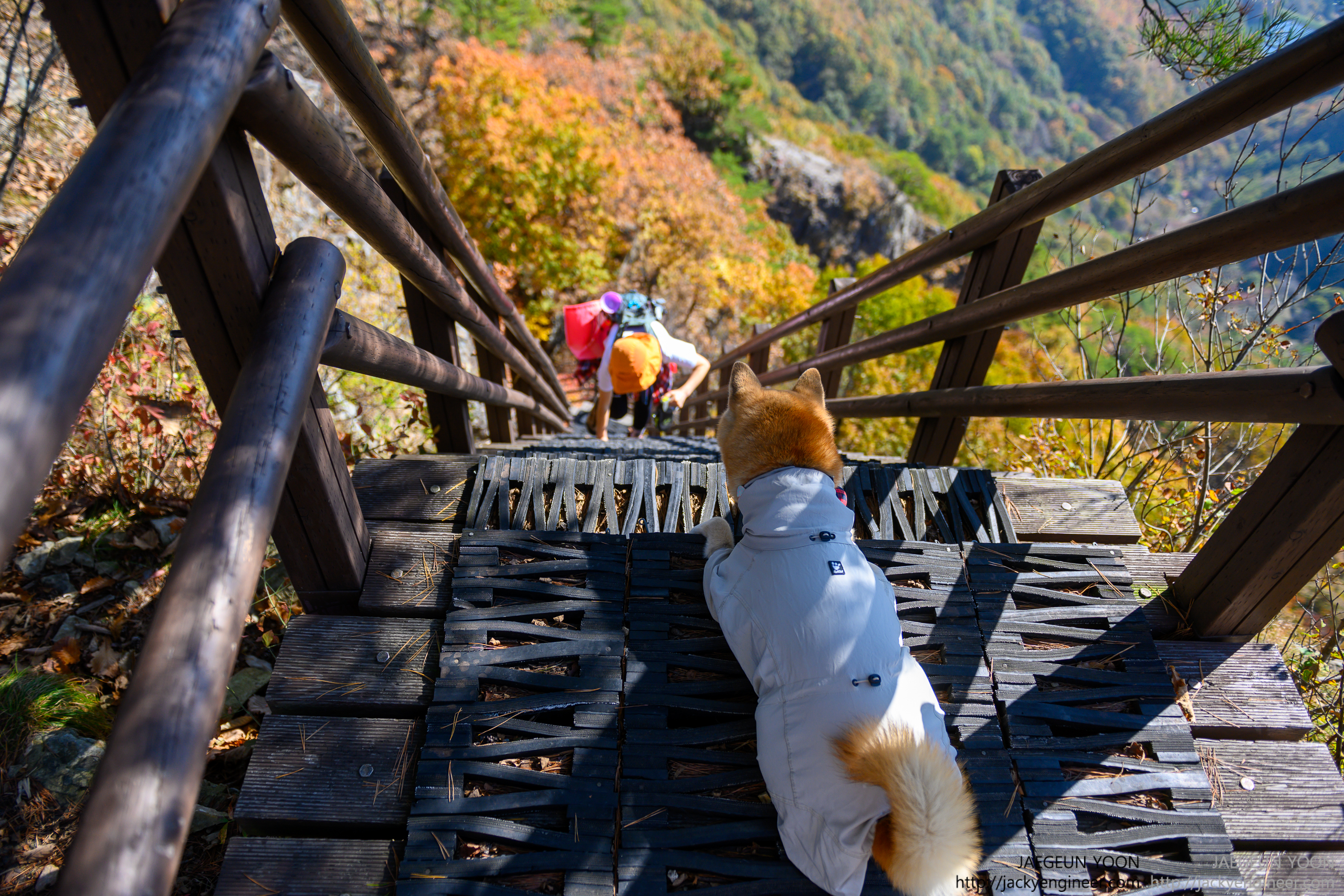 출렁다리 중간에서 가을을 느끼는 순간.